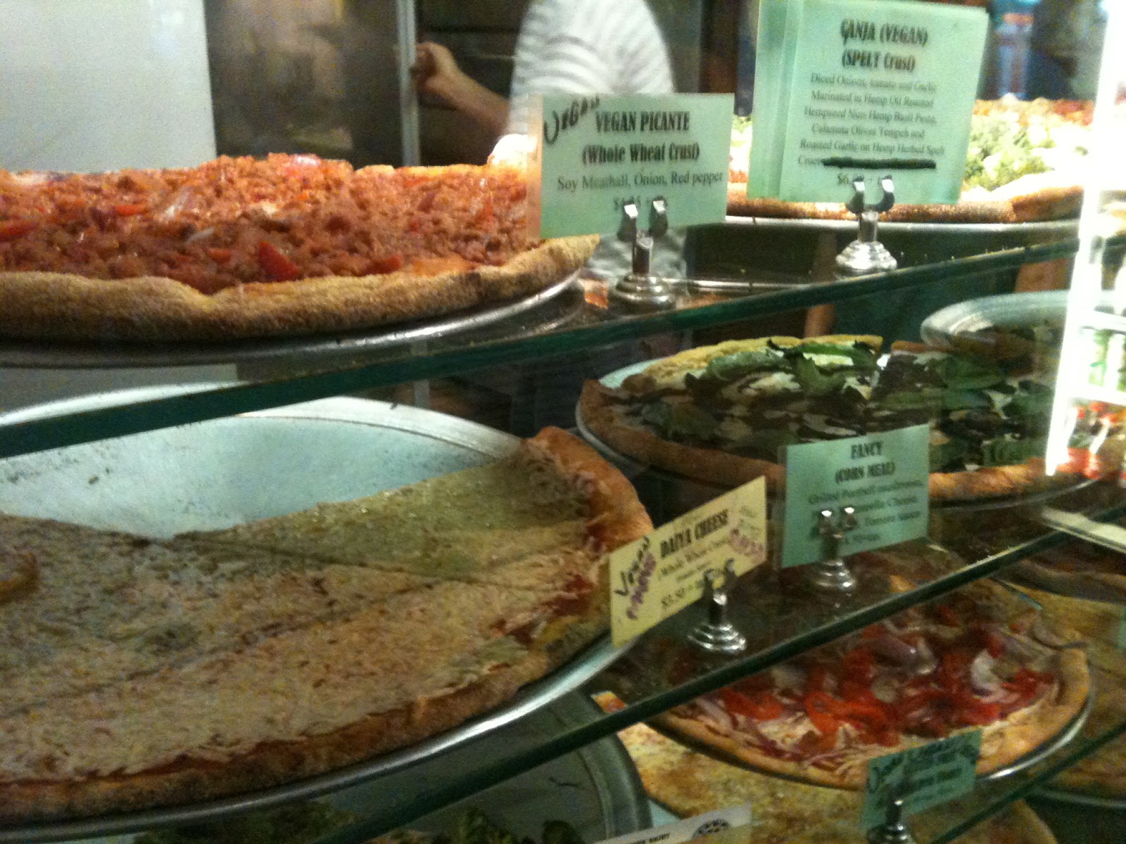 I really love Viva Herbals Pizzeria in New York City. When I stay in NY, I'm alway somewhere in the vicinity of it and they always have vegan slices affordably priced and ready to go! My favorite is the pictured slice covered in all things green. There is no tomato sauce on this slice, only a nut-free pesto. So green and delicious!